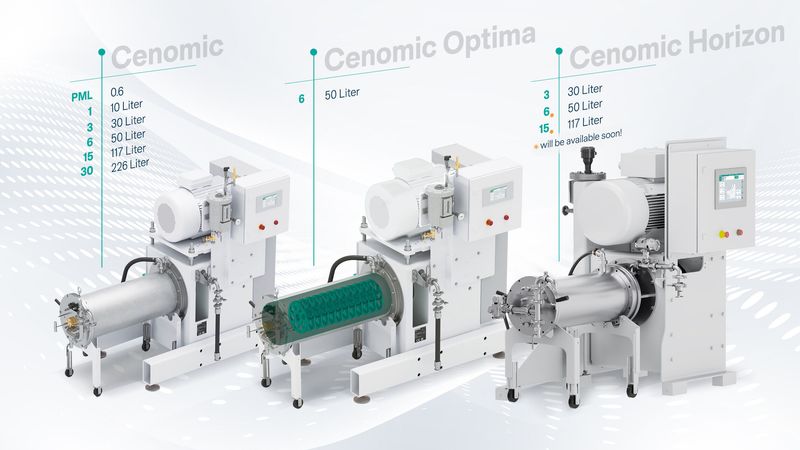 The Cenomic bead mill line delivers flexible and reliable wet grinding with excellent cooling performance and low to medium viscosity.